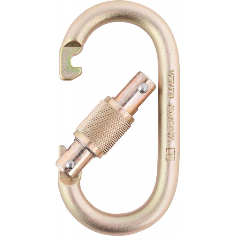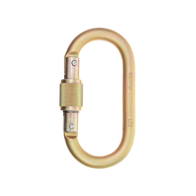 Стальной карабин симметричной овальной формы с винтовой муфтой.